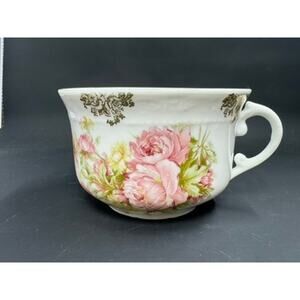Tea Cup & Saucer Set,No Markings,Pink Peonies, Gold Clusters,No Chips Or Crazing