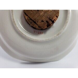 Cute little teacup shaped piggy bank with a play on tea leaf/fortune telling “Your Fortunes in the Cup” in cursive around the coin slot. The cup has some Pennsylvania Dutch style designs on it, a rooster in multiple colors. The saucer is attached. I have replaced the original cork stopper with a new one to make it functional again. There is a model number on the bottom but I could not determine the maker, likely Japanese from the 40s or 50s.