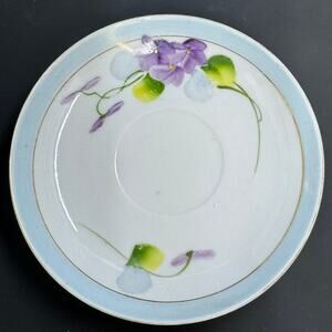 Tea Cup and Saucer, blue, white and purple flowers, made in Japan, a little beat up though