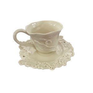 Tea Cup and Saucer Exculsive beige color beautiful design and good condition cup 4x 3 and the saucer size 6.5 price is 20 0.70