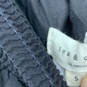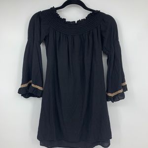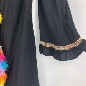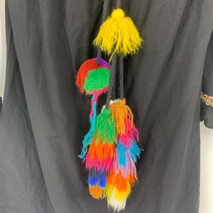Tea & Cup top small tunic blouse boho pom poms embroidery smocking black lined