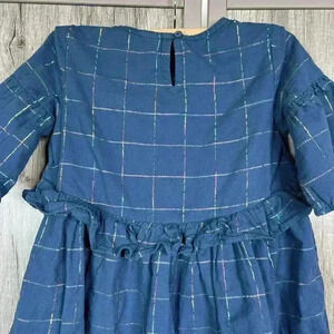 Tea Girls Dress Sz 7 Ruffle Blue with Metallic Thread Flutter Sleeve Cotton