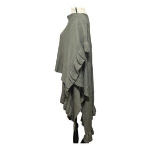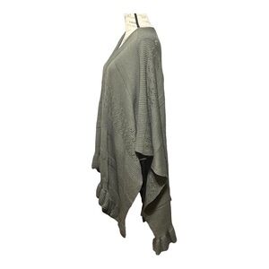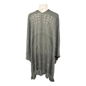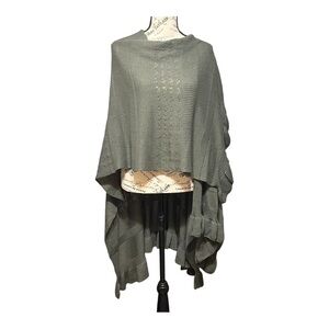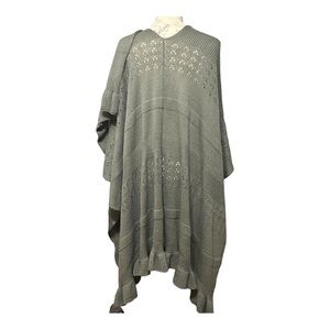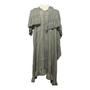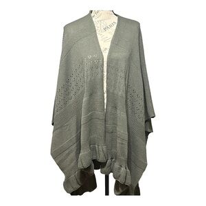 Tea Green Chunky Open Knit Ruffle Shawl Wrap Lagenlook Winter Layering Piece OS