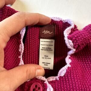 Tea Magenta Scalloped Trim Knit Cardigan Sz 12-18 mo