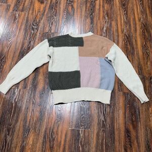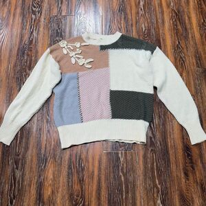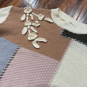 Tea N Rose Floral Sweater Womens Size Large L Spring Pink Green Beige Crochet