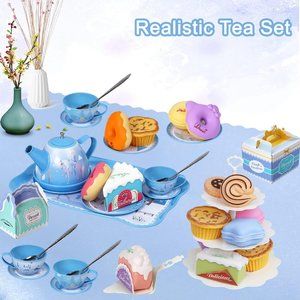 Tea Party Set for Little Girls, 46Pcs Princess Tea Time Toy Including Dessert