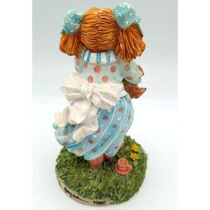 This carefully crafted figurine from the 1996 Linda Grayson Collection has Heather holding Timothy Bear and a basket of cookies. A charming collectible.