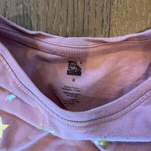 Pink long sleeve shirt featuring star accents. Perfect for casual wear.