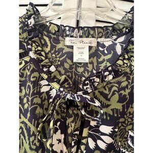 Tea Please Peasant Womens 1X Green Black Balloon Sleeves Boho Blouse Top