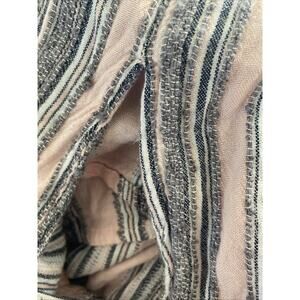 Tea Rose Shirt Striped Women's Rolled Sleeve Pink Gray India Tunic Soft SZ L This item is used , it does have a loose stitch on one of the sides of the tunic Please see pictures for description.