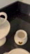 NOTE: these pieces are 'dimpled' with a Rae Dunn like finish…see photos for the appearance. There are also a couple of manufacturer defects - these are not flaws. Some paint imperfections within gold hearts. Wear on bottoms of all pieces. A crazing line down one side of creamer. See photos and video for details…all are part of description.