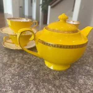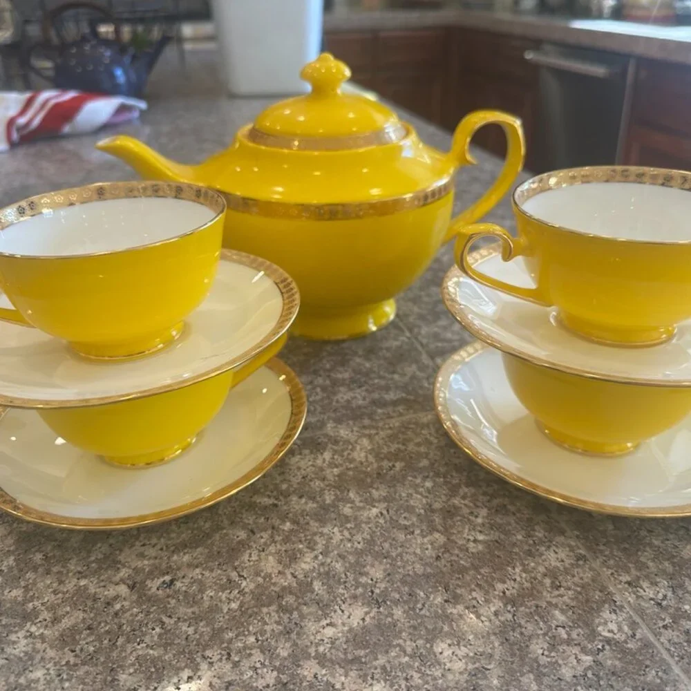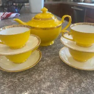 This item is only available until 11/16/2025 Yellow elegant and fun teaset 4 cups and saucers in perfect condition