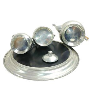 Tea Set Queen Art Hand-made Pewter Pot Tray Sugar Creamer Hallmark Stamp 5pc set
