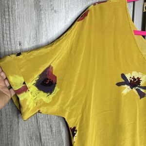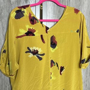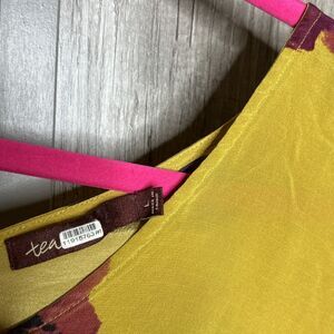 Tea Silk Top Floral Print Short Sleeves Tunic Size L