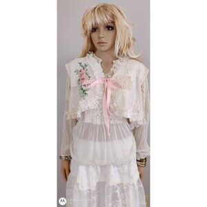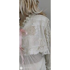 Tea Stained Shabby Chic Vest Lace Crochet Romantic Coquette Roses Pink Ribbons