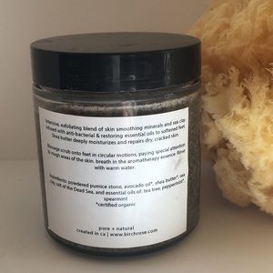 Intensive, exfoliating blend of skin smoothing minerals and sea clay infused with anti bacterial & restoring essential oils to softened feet. Shea butter deeply moisturizes and repairs dry, cracked skin.