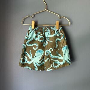 EUC size 18/24m tea collection octopus print swim trunks. Olive green with blue octopus all over, attached mesh brief liner.
