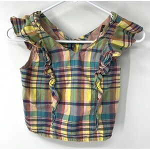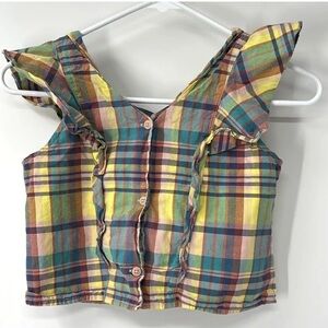 Tea collection girls plaid blouse size 12 pit to pit measures 14 inches. Shoulder to hem measures 14.5 inches