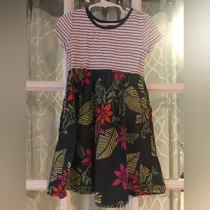 Tea collection size 6 100% cotton dress with rainforest floral and stripes EUC