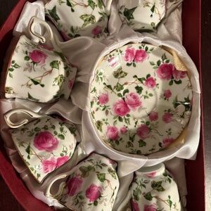 Beautiful 6 pieces cup and saucers. Color is a stunning Pink roses. Great for drinking teas or just decorative pieces for display. No scratches or chips.