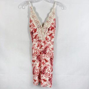 🌹Tea n Cup Red Floral Crochet Halter Mini Dress