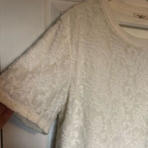 Pretty lace overlay with lining makes this tee easy to dress up or down. Pair with a blazer for a business casual look or jeans for a night out.