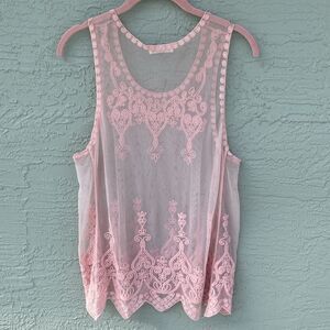 Tea n Rose Los Angeles Sz M/L Sheer Tank Pit to Pit 19 Inches Length 26 Inches