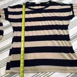 Tea n Rose brand Navy and Tan striped knitted top size medium crewneck