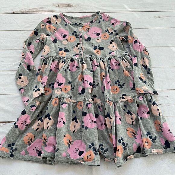 Gray, long sleeved, tiered dress. Play condition due to small hole in the back. Near shoulder. Size 16