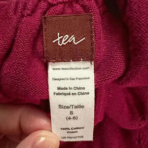 Soft, maroon bubble sleeve sweater from Tea Collection. Pointelle knit; buttons at the neck; turtleneck.