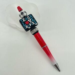 Teach love inspire pen handmade NEW teacher apple rhinestone bling teal red black white