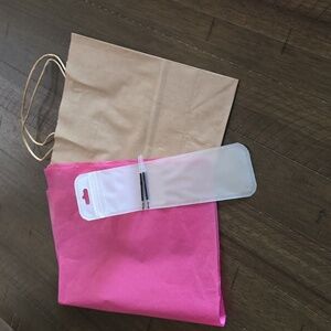 Includes: A lanyard, wristlet, 3 inch magnet, pair of earrings, chap/lipstick holder, pen with 2 refills, zippered bag ( for make-up, travel, work, supplies,etc), a gift bag, 2 half sheets of tissue paper.