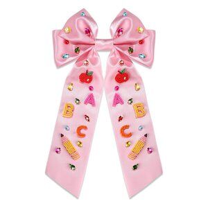 Features: Large, chic bow with rhinestones and adorable school-themed charms like pencils, books, and letters. Made with shiny satin and durable alloy clips for a secure fit — comfortable and stylish for teachers or educators.