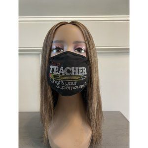 Our cotton blend Teacher Superpower mask is beautifully made with our signature custom cut rhinestones which have an almost diamond like sparkle.