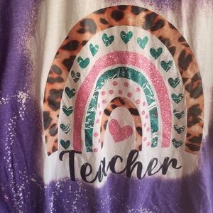 Teacher T Shirt Bleached Design Rainbow 3x XXXL Purple