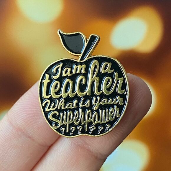I Am A Teacher What Is Your Super Power? Black Apple Enamel Pin/ Brooch Lapel