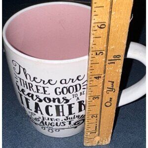 Durable ceramic mug with a charming teacher-themed design and a pink interior. Holds 12 oz, ideal for hot beverages. Easy to clean and microwave-safe.