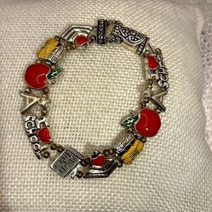 Teachers Beaded Slide Bracelet with Red Apple and Yellow School Bus Charm