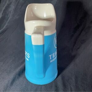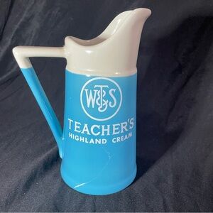 Vintage Teacher's Highland Cream pitcher in blue and cream. Perfect for collectors.