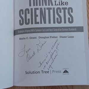 Teaching Students to Think Like Scientists. This textbook is published by Solution Tree Press. ISBN 9781936765386. Authors Maria C. Grant, Douglas Fisher, and Diane Lapp. This book is CCSS aligned. No tears or missing pages. There is some writing in the front.