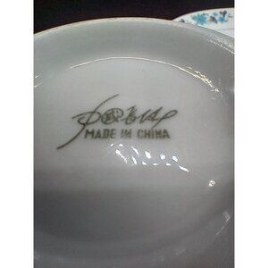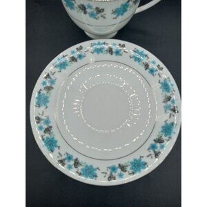 Teacup Saucer Footed China With Blue Flowers Silver Leaves Trim Pattern Vintage