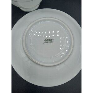 Footed teacup is 2.75 inches tall. Saucer is 5.5 inches across. Each piece has minor shelf wear.