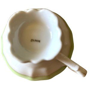 Teacup and Saucer Vintage Old Gold Japan Mint Green and Rose Floral Hand Painted