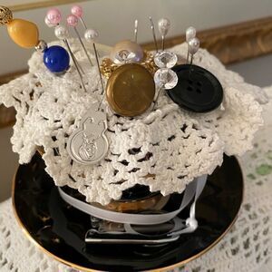 Tea cup pin cushion #handcrafted #up-cycled #vintage #sewing #hatpin #gift