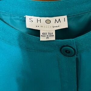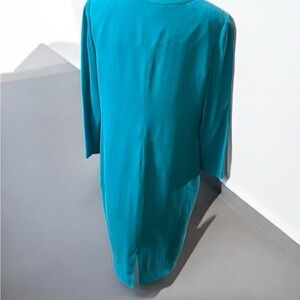 Teal 100% Silk Lined Midi Dress with Round Collar for Work
