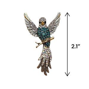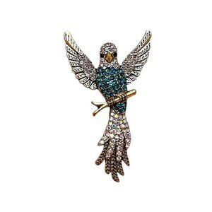 Sparkly bird brooch with teal and AB rhinestones. 2.1” in length. Brand new and individually packaged.