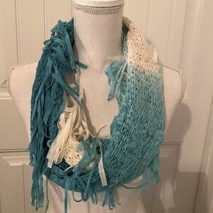 Teal And Cream Color Infinity Scarf