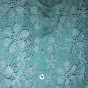 Teal Aqua Tank Top with Outer Front Lace Layer with Button Detailing Down the Center