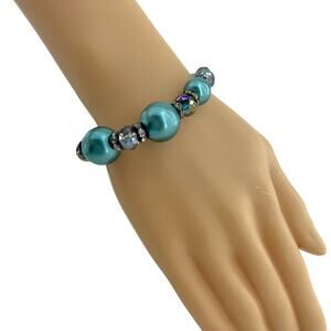 Teal Blue Beaded Magnetic 7 inch Handmade Bracelet