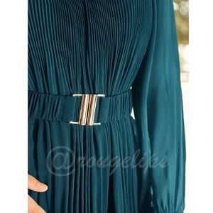 Teal Blue Boho Mini Pleated Dress Belted, Elastic